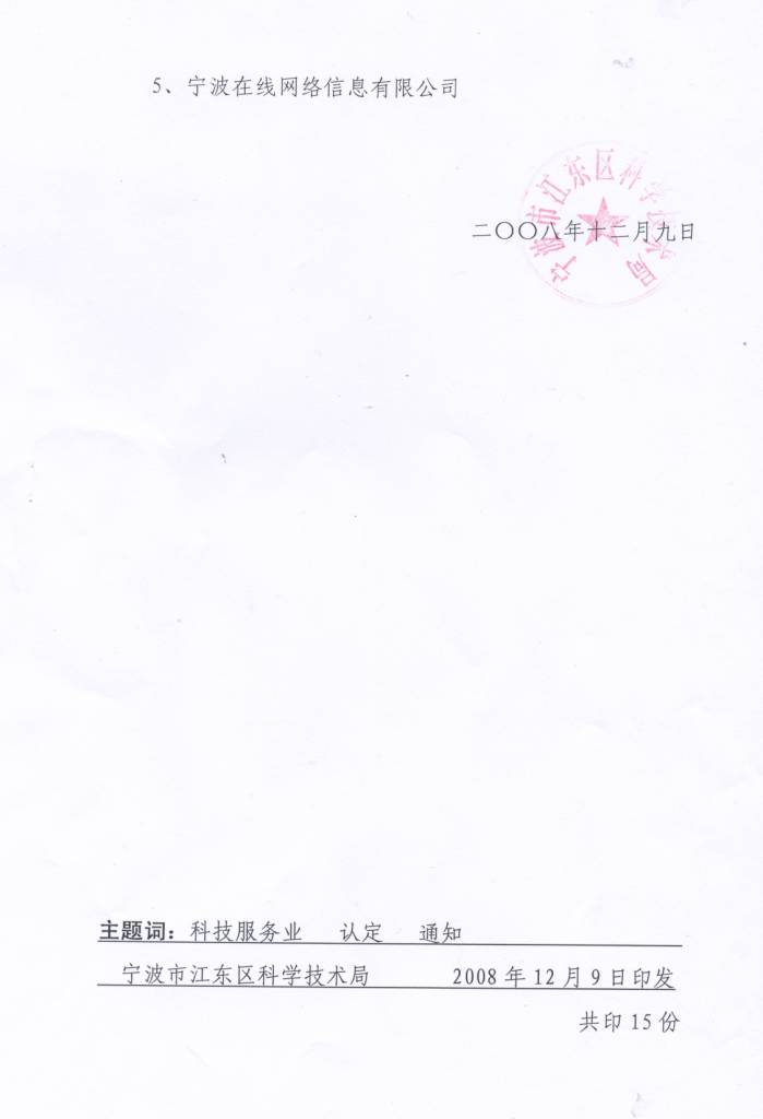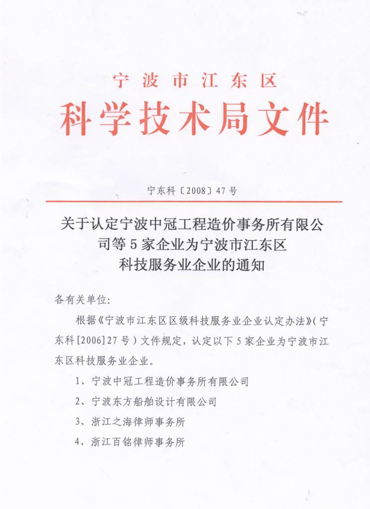 關(guān)于認定寧波中冠工程造價事務(wù)所有限公司等5家企業(yè)為寧波市江東區(qū)科技服務(wù)業(yè)企業(yè)的通知