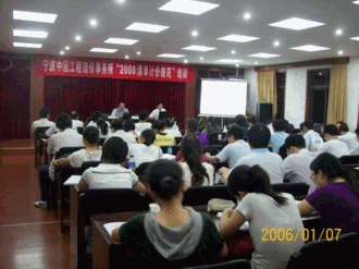為配合“2008清單計(jì)價(jià)規(guī)范”于2009年9月1日開始正式在寧波啟用。我司于2009年8月27日晚,在百丈街道五樓會(huì)議室,舉辦“2008清單計(jì)價(jià)規(guī)范”專項(xiàng)培訓(xùn)學(xué)習(xí)。本次培訓(xùn)學(xué)習(xí)對(duì)象為公司全體專業(yè)技術(shù)人員。