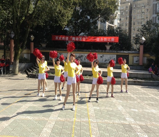 健身舞比賽中,我公司女同事以優(yōu)美的舞姿迎接自己的節(jié)日