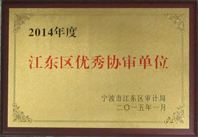 根據(jù)寧波市江東區(qū)審計(jì)局,近期發(fā)布的《關(guān)于表彰江東區(qū)2014年度優(yōu)秀協(xié)審單位和優(yōu)秀協(xié)審人員的通報(bào)》,我公司被評(píng)選為江東區(qū)2014年度優(yōu)秀協(xié)審單位。