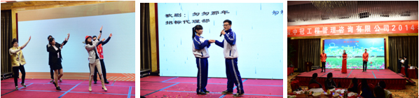 懷遠(yuǎn)志馳良馬,世易新春?jiǎn)景籽?。在羊年?lái)臨之際。公司2014年會(huì),于2015年2月14日在杭州灣世紀(jì)金源大酒店順利召開。中冠公司、分公司以及下屬公司的全體員工歡聚一堂,細(xì)數(shù)剛剛邁越的365個(gè)晝夜,仿佛是365個(gè)臺(tái)階,聆聽領(lǐng)導(dǎo)們對(duì)于去年一年的工作總結(jié),展望公司未來(lái)發(fā)展的宏偉藍(lán)圖。 優(yōu)秀主管表彰 優(yōu)秀導(dǎo)師表彰 優(yōu)秀員工表彰 最佳新人表彰 進(jìn)、梁岸、賴永輝、范娟、張琳玲、郭曉敏、潘雅波、沈勝男、陳衛(wèi)華、朱玲玲、殷云云、魏煒文16人榮獲2014年度公司優(yōu)秀員工榮譽(yù)稱號(hào),孫碧君、盛程聰、楊峰、孫少美、余思倩、方紀(jì)偉、周熹照8人榮獲2014年度公司最佳新人榮譽(yù)稱號(hào)。緊接著又進(jìn)行了對(duì)2014度榮獲各區(qū)級(jí)優(yōu)秀協(xié)審個(gè)人、市級(jí)招標(biāo)代理優(yōu)秀個(gè)人和先進(jìn)集體、2014年度考試合格人員、公司優(yōu)秀咨詢項(xiàng)目、服務(wù)外包優(yōu)秀個(gè)人等獲獎(jiǎng)人員的表彰儀式,分別由公司副總經(jīng)理謝慧敏、任福成、總經(jīng)理助理?xiàng)钭娴?、總師辦主任張丹蕾、綜合辦公室主任陳黎、以及各分公司經(jīng)理等依次為獲獎(jiǎng)人員頒獎(jiǎng)。在表彰過(guò)程中,會(huì)場(chǎng)上不時(shí)響起公司全體員工為獲獎(jiǎng)員工獻(xiàn)上的熱烈的掌聲和真摯的祝賀。 執(zhí)行董事聶偉軍作2014年度公司工作總結(jié)報(bào)告 接著,第二篇章文藝表演,在招標(biāo)代理部帶來(lái)的舞蹈《逗舞》拉開了序幕。整場(chǎng)表演由公司各部門自編自導(dǎo),表演形式各異,有歌舞、小品、樂(lè)器、舞臺(tái)劇等等,中間還穿插了新穎的游戲環(huán)節(jié),令人目不暇接、捧腹大笑,回味無(wú)窮。經(jīng)全體員工投票評(píng)比:綜合辦公室的歌舞劇《老吃貨》榮獲了一等獎(jiǎng);北侖分公司帶來(lái)的小品《非雷勿擾》、造價(jià)四部的紫光手熒舞《舞動(dòng)夢(mèng)想》和造價(jià)三部的啞劇《村長(zhǎng)蓋章》榮獲了二等獎(jiǎng);仲冠事務(wù)所估價(jià)公司的舞蹈《歐洲宮廷秀》、工程造價(jià)二部的舞蹈《情迷巴塞羅那》、招標(biāo)代理部的舞蹈《逗舞》、造價(jià)二部的舞臺(tái)劇《重返青春》、奉化分公司的舞蹈《風(fēng)情拉丁》榮獲了三等獎(jiǎng);招標(biāo)代理部的歌劇《匆匆那年》、造價(jià)三部的小品《唐伯虎點(diǎn)秋香》、造價(jià)一部的熒光舞《walking in memphis》、造價(jià)四部的舞蹈串燒《小賴哥的奇幻之旅》、舟山分公司的歌曲《春暖花開》、造價(jià)一部的小品《奔跑吧,小蘋果》獲得了優(yōu)勝獎(jiǎng)。 員工文藝表演 精彩紛呈地表演結(jié)束后,全體與會(huì)人員帶著意猶未盡地心情步入了第三篇章團(tuán)拜晚宴。在觥籌交錯(cuò)之間,同事們的友情得到了進(jìn)一步的加深!穿插的抽獎(jiǎng)及游戲更是讓大家驚喜連連、歡聲笑語(yǔ)不斷!在這歡快、愉悅的氣氛中,中冠公司2014年會(huì)落下了帷幕! 公司團(tuán)總支