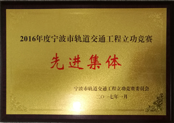 近日我公司被寧波市軌道交通工程立功競賽委員會授予“2016年度寧波市軌道交通工程立功競爭賽先進集體”的榮譽稱號,同時我公司范琦同志被授予“2016年度寧波市軌道交通工程立功競賽活動先進個人”榮譽稱號。 特此報喜