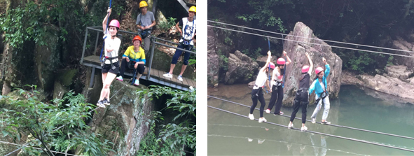 2017年7月1日清晨,中冠公司代理部一行20多人來到四明山柿林村,開始了為期一天的部門拓展活動。目的想通過這項(xiàng)活動凝聚團(tuán)隊(duì)?wèi)?zhàn)斗力和培養(yǎng)團(tuán)隊(duì)的合作精神。車行1小時(shí)左右到達(dá)目的地,大家從森林穿越開始,吊鋼索走鋼絲,從單兵作戰(zhàn)到互相扶持共渡溪水。 招標(biāo)代理部