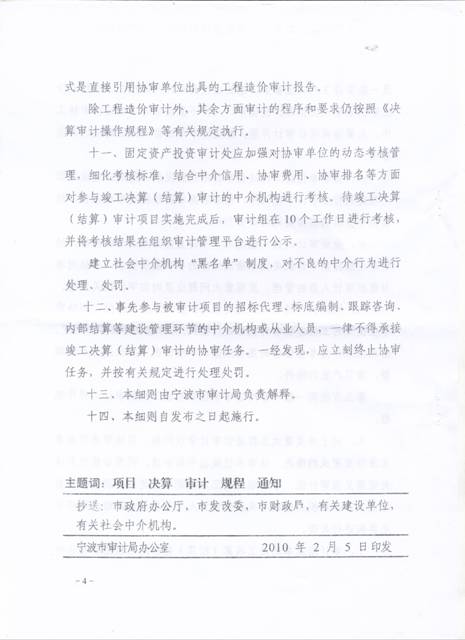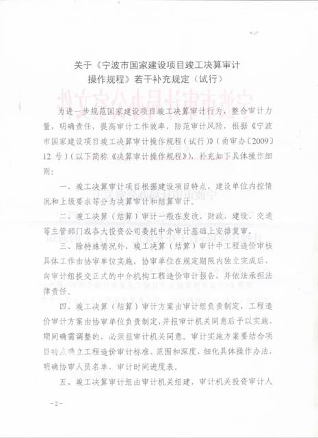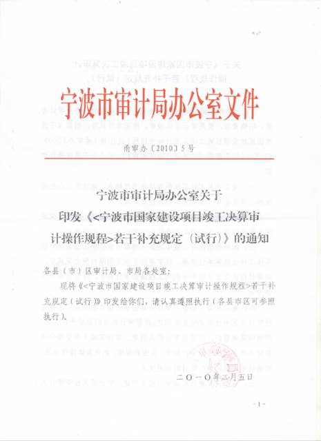 寧波市審計局辦公室關于印發(fā)《<寧波市國家建設項目竣工決算審計操作規(guī)程>若干補充規(guī)定(試行)》的通知