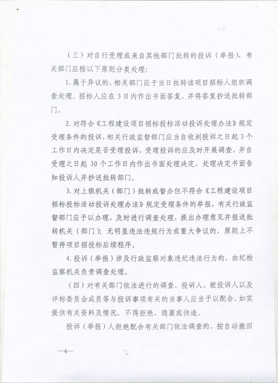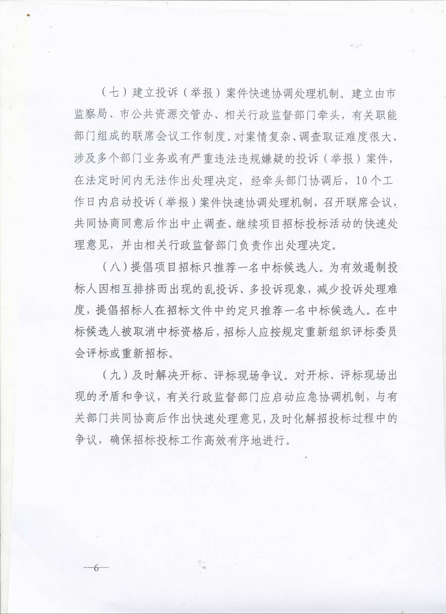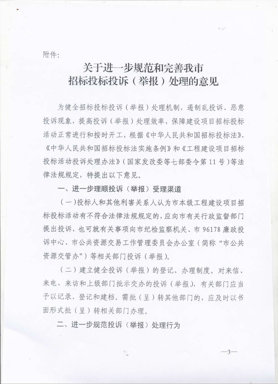 關(guān)于印發(fā)《關(guān)于進(jìn)一步規(guī)范和完善我市招標(biāo)投標(biāo)投訴(舉報(bào))處理的意見》的通知